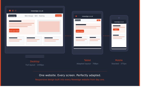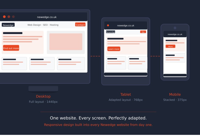 Google cemented this change in 2015 when it began penalising websites that weren't mobile-friendly in its search rankings. If your website didn't work on a phone, you were falling behind — in both user experience and SEO. At Newedge, mobile optimisation has been a cornerstone of everything we build, and today every site we deliver is fully responsive from the ground up.